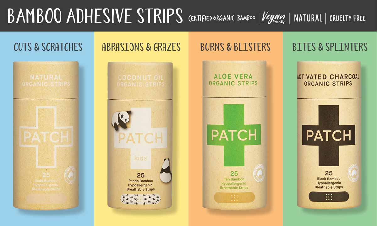 100% bio-degradable organic bamboo plasters. Individually sterile wrapped in rice paper – 100% plastic free!
