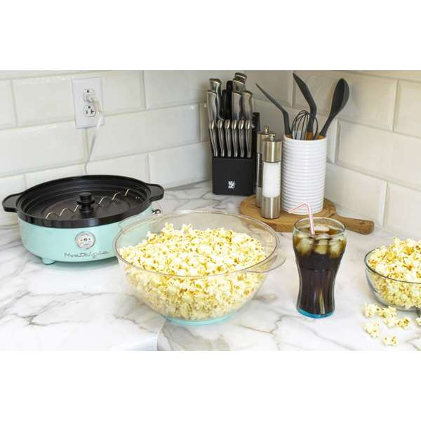 FUN & EASY: Simply add oil and kernels, turn it on, and listen for the popping of popcorn to begin. When the popping stops, flip over the bowl, add your preferred seasons, and enjoy your snack. Cool touch handles make flipping a breeze.